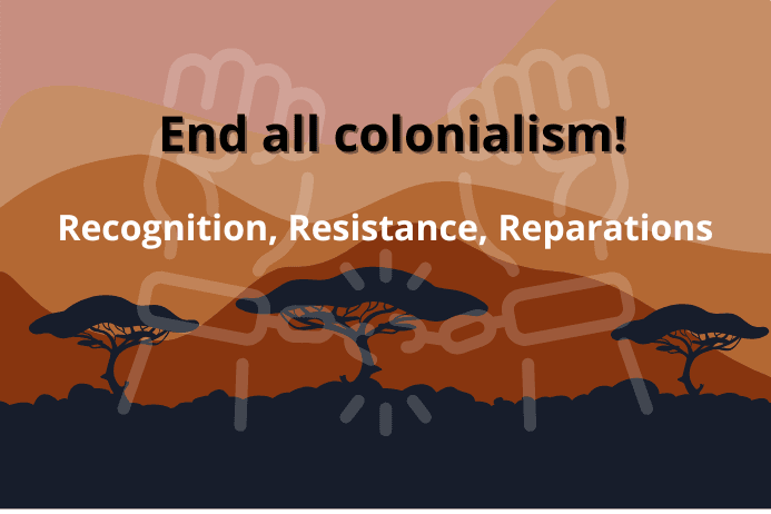 End all colonialism!Recognition, Resistance, Reparations